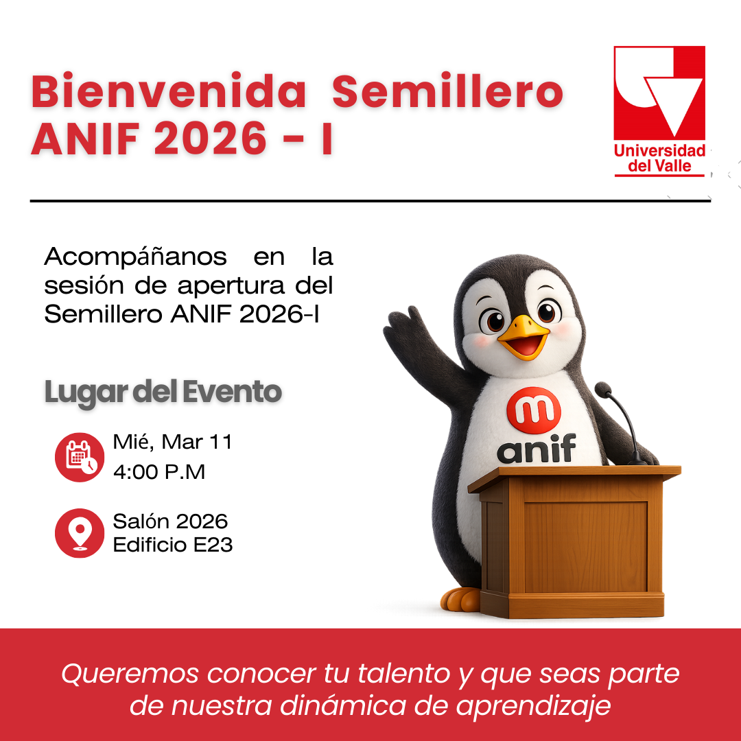 Te invitamos a participar en la Sesión de Organización del Semillero ANIF 2026-I, un espacio para presentar los objetivos, el cronograma de actividades y a los profesores tutores que guiarán este nuevo ciclo académico.